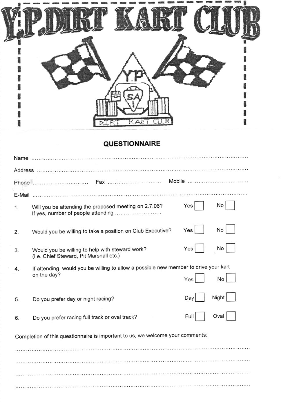 As you will have seen, season 2006 has so far been a difficult time for the YP Dirt Kart Club. Some urgent matters need to be discussed by our members, to decide on some future direction for our club.