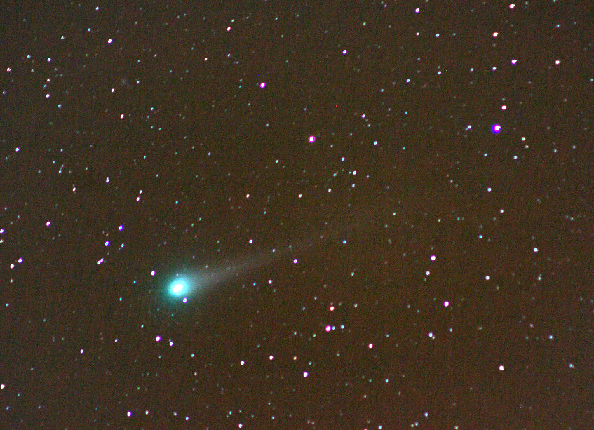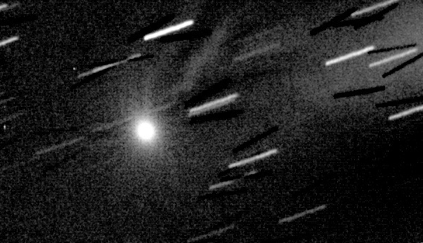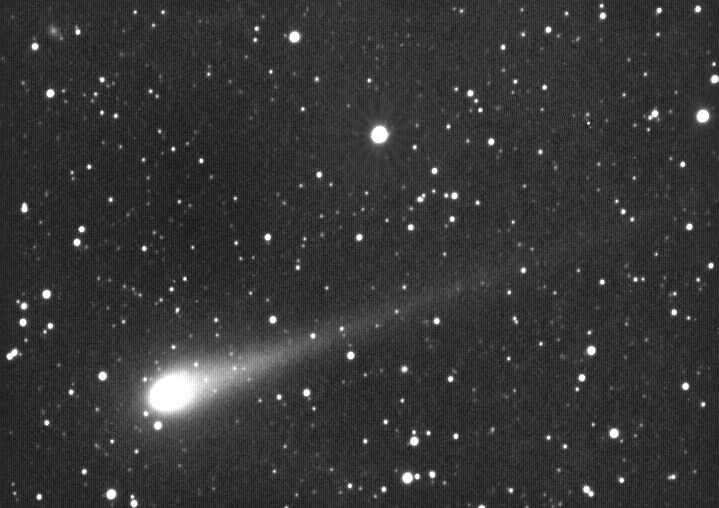 degrees wide. south at top. The dust tail stretches 2 degrees.